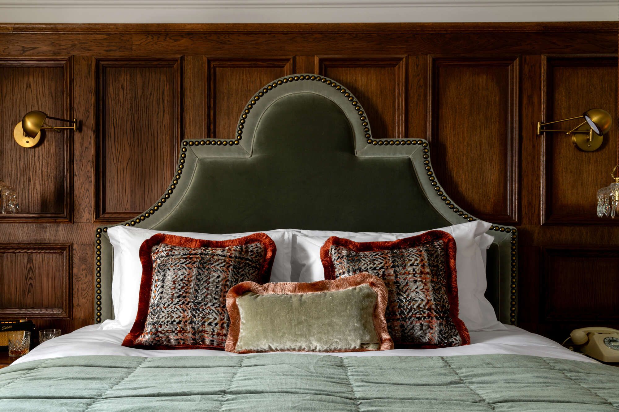 Instead, they’re wall-to-wall deep burgundy and jewel-toned, decked out with thick, rich materials, fringe cushions, pendant bedside lights, vintage radios and a couple of simply-stunning copper bathtubs. These rooms can only be described as downright boujee, and our designers well and truly hit the mark.