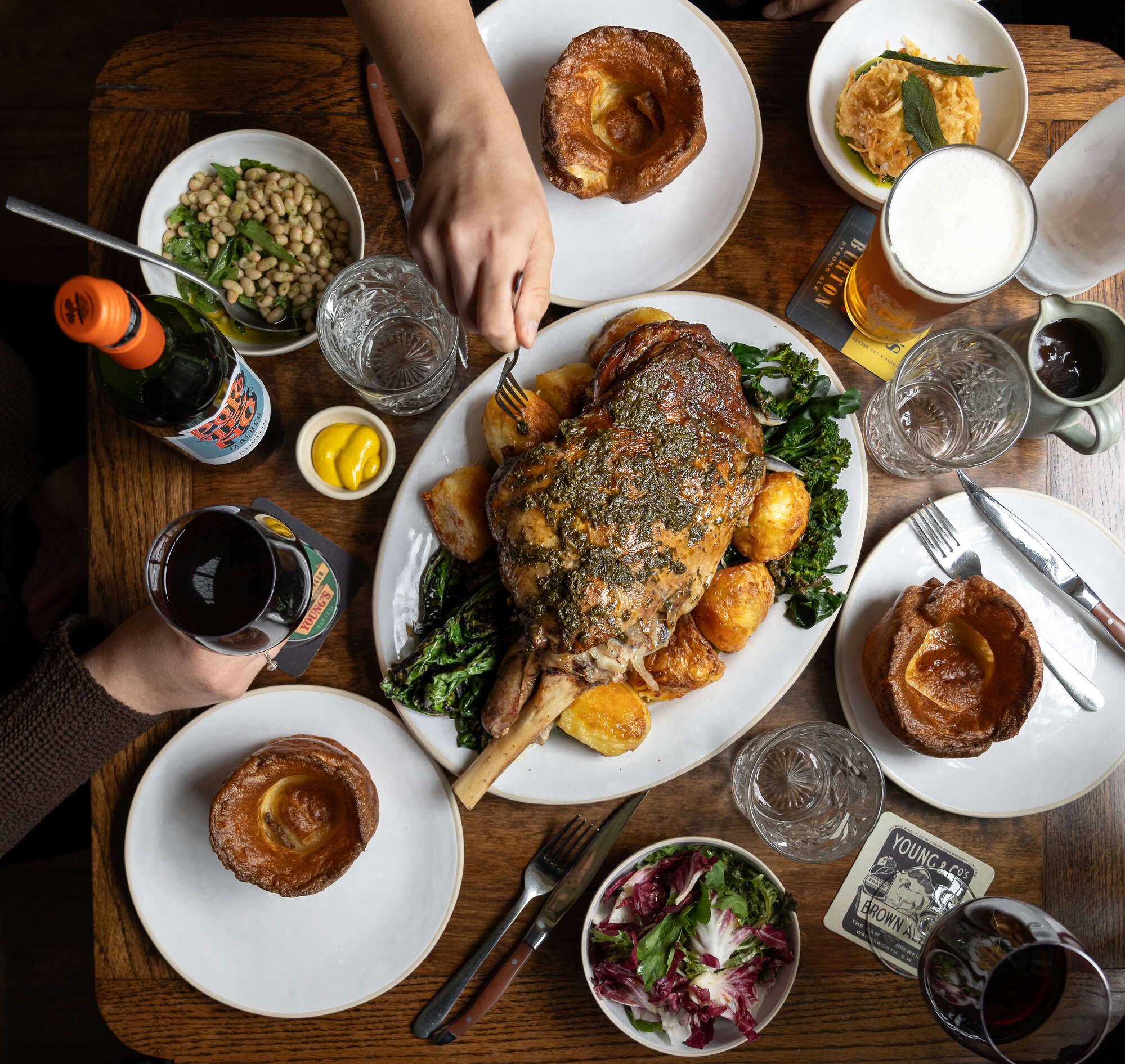 For us Sunday is like a big old hearty hug, our roasts are sacred, (in fact, we’d go as far to say as they’re probably the best in the world) think piled-high plates of slow roasted succulent cuts of meat, larger-than-life Yorkies and plentiful gravy, bowl-you-over crumble, with oh-so-good custard, or sharing roasts matched with we-really-should-do-this-more-often pints by the fire. Sundays at Young’s are special.