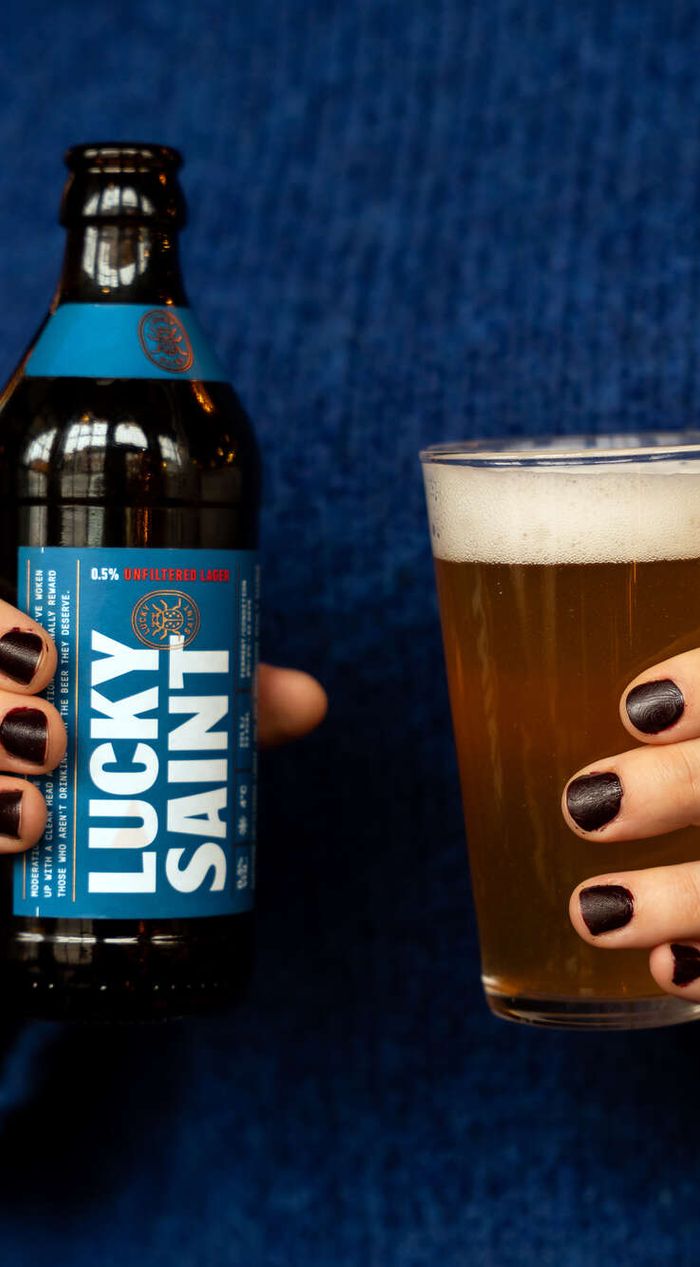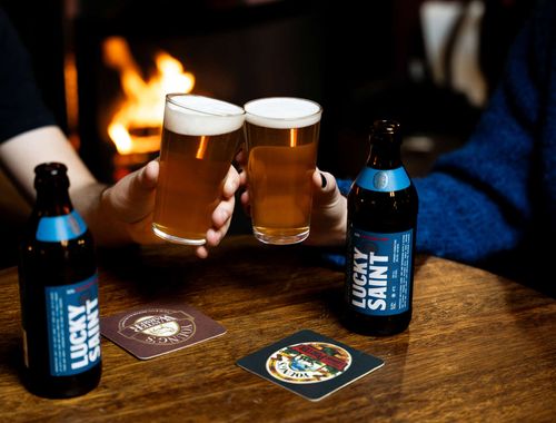- Add a 330ml bottle of Lucky Saint to your basket and check-out, this one’s on us!